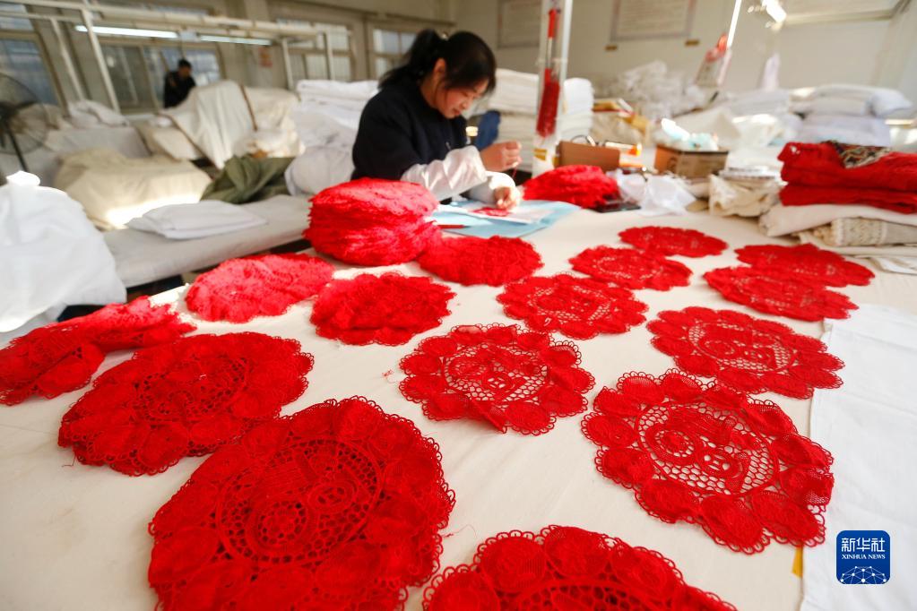 隨著(zhù)新年臨近,山東省青島市即墨區通濟街道花邊企業(yè)的工人忙著(zhù)加緊生產(chǎn),滿(mǎn)足國內外市場(chǎng)需求?!凹茨ㄟ叀笔菄壹壏俏镔|(zhì)文化遺產(chǎn)魯繡的一種,其針?lè )üに嚜毺?,造型宛如浮雕。近年?lái),當地花邊企業(yè)通過(guò)開(kāi)發(fā)設計特色文創(chuàng )產(chǎn)品,開(kāi)展線(xiàn)上線(xiàn)下定制和銷(xiāo)售,產(chǎn)品暢銷(xiāo)海內外市場(chǎng),訂單迎來(lái)產(chǎn)銷(xiāo)兩旺的良好勢頭。