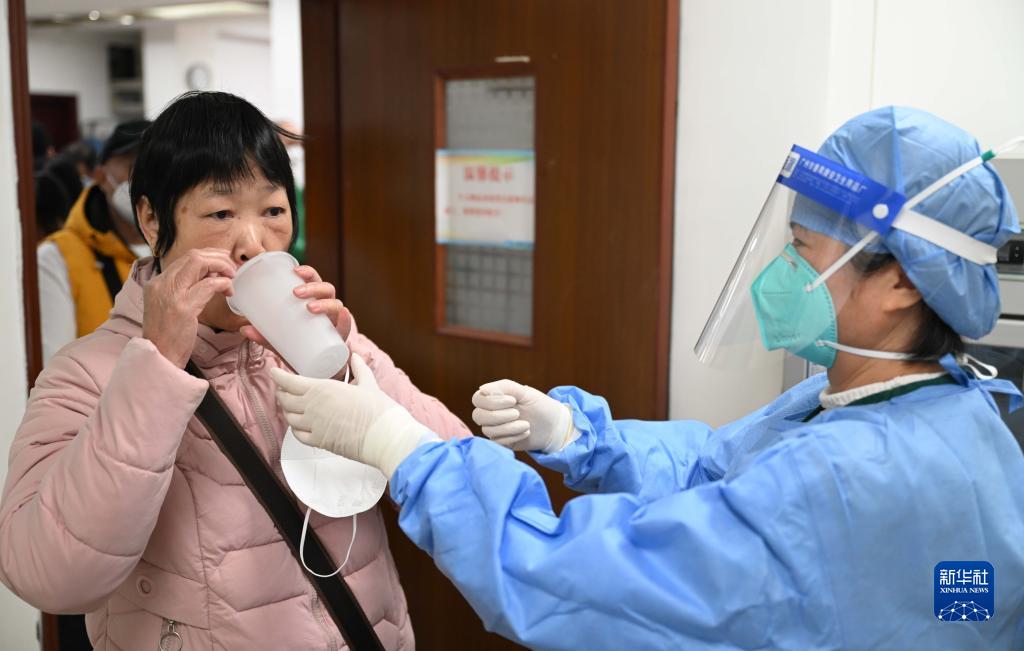 12月13日,在廣州市荔灣區人民醫院,老年居民在接種吸入式新冠疫苗。
