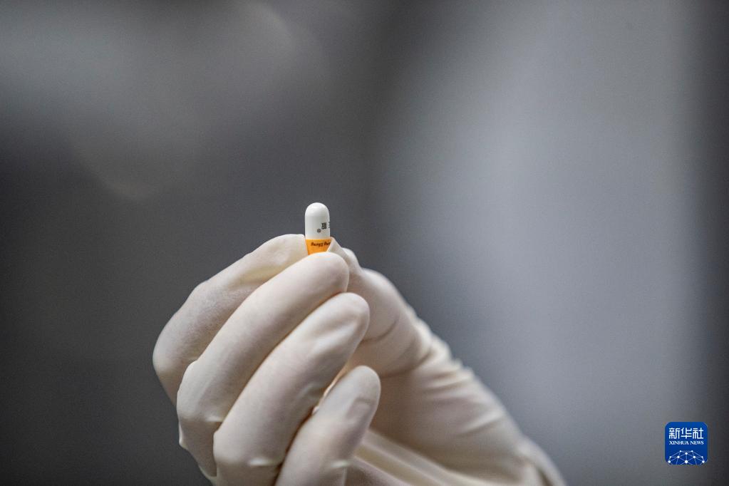 12月16日,在重慶市永川區新領(lǐng)先(重慶)生物醫藥一體化研發(fā)服務(wù)基地,新領(lǐng)先重慶研究院的研發(fā)人員查看全自動(dòng)硬膠囊充填機制作的樣品膠囊藥。