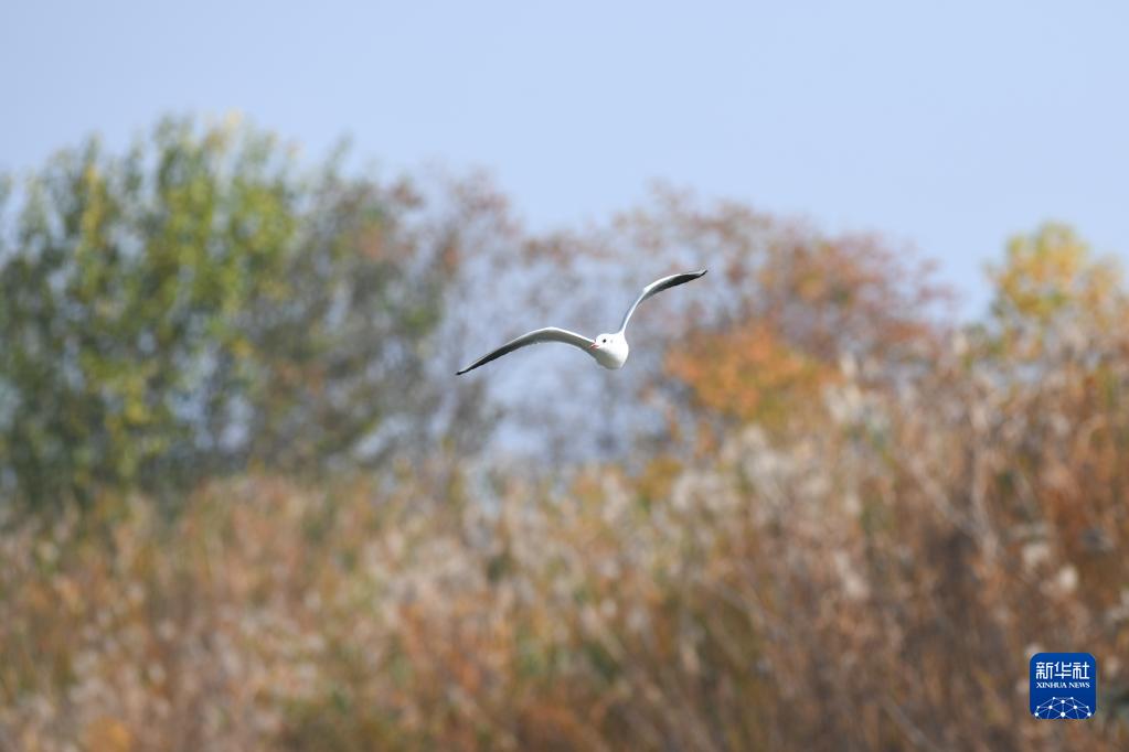 11月24日,一只鳥(niǎo)在合肥市巢湖湖濱濕地飛翔。
