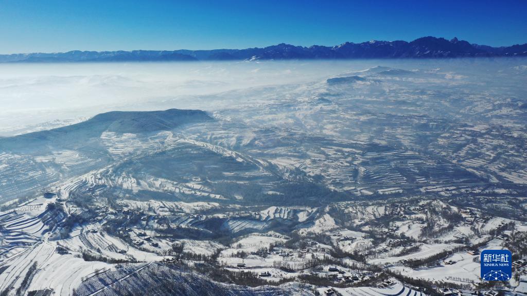 這是12月17日在臨夏回族自治州和政縣拍攝的雪景(無(wú)人機照片)。