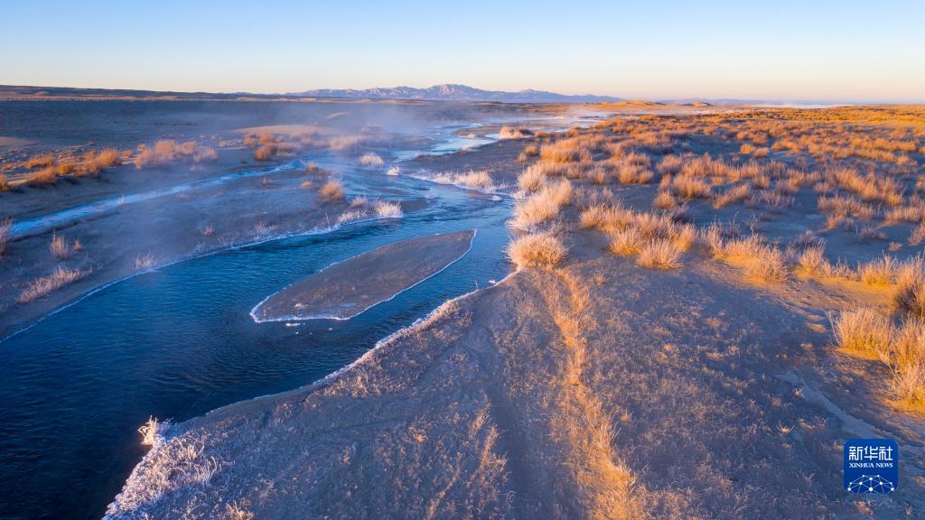 12月17日在哈爾騰高原上拍攝的晨光中的小哈爾騰河(無(wú)人機照片)。