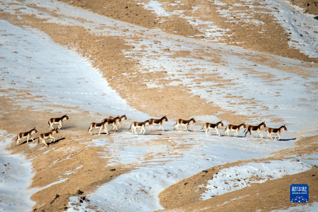 一場(chǎng)降雪過(guò)后,地處甘肅省酒泉市阿克塞哈薩克族自治縣境內的哈爾騰高原被皚皚白雪覆蓋,成群的藏野驢、野牦牛等野生動(dòng)物在高山雪地間戲雪覓食,為冬日的哈爾騰增添了不少生機與活力。