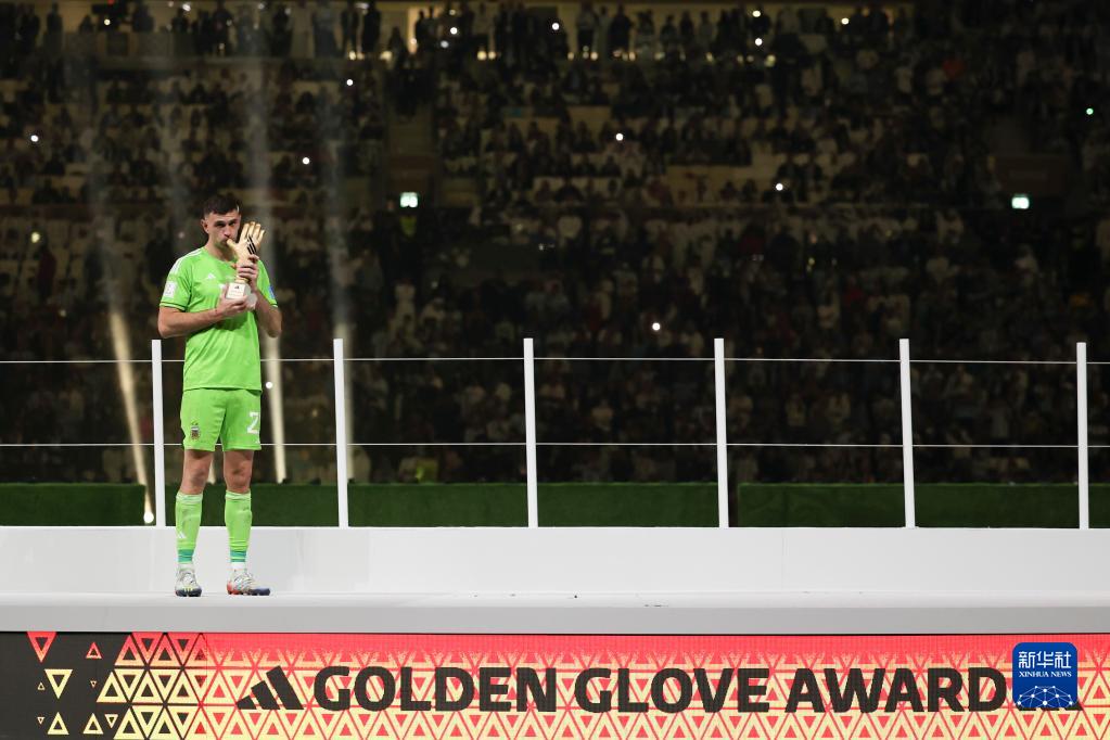 12月18日,獲得世界杯金手套獎的阿根廷隊守門(mén)員馬丁內斯在頒獎儀式上。