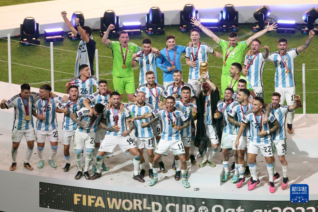 12月18日,阿根廷隊球員在頒獎儀式上慶祝奪冠。