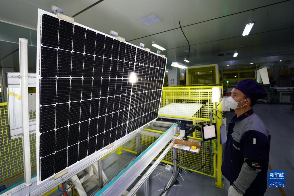 12月19日,位于河北邢臺經(jīng)濟開(kāi)發(fā)區的晶澳(邢臺)太陽(yáng)能有限公司工人在檢測太陽(yáng)能組件質(zhì)量。