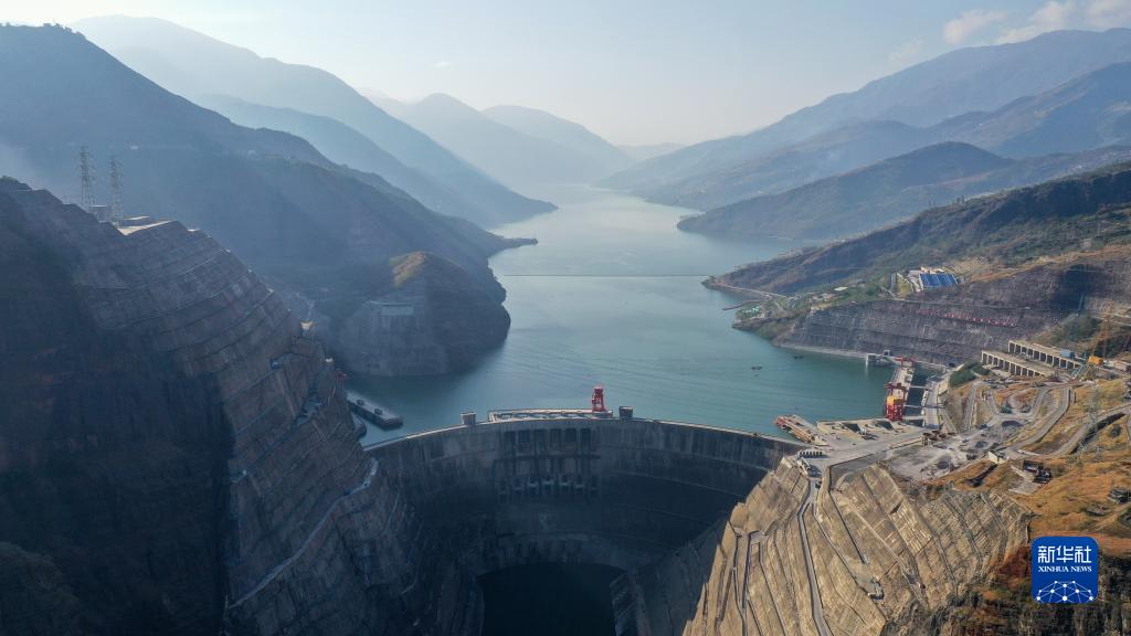 這是11月24日拍攝的白鶴灘水電站大壩及庫區(無(wú)人機照片)。