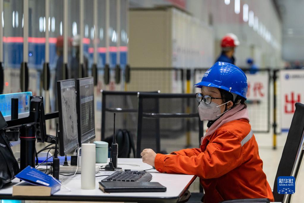 12月19日,在白鶴灘水電站右岸地下廠(chǎng)房,工作人員在監視機組運行狀態(tài)。