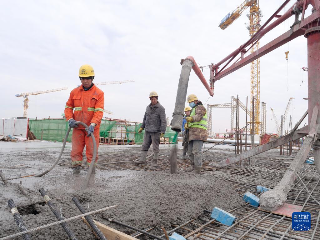 12月20日,工作人員在南昌東站施工現場(chǎng)忙碌。新華社記者 胡晨歡 攝