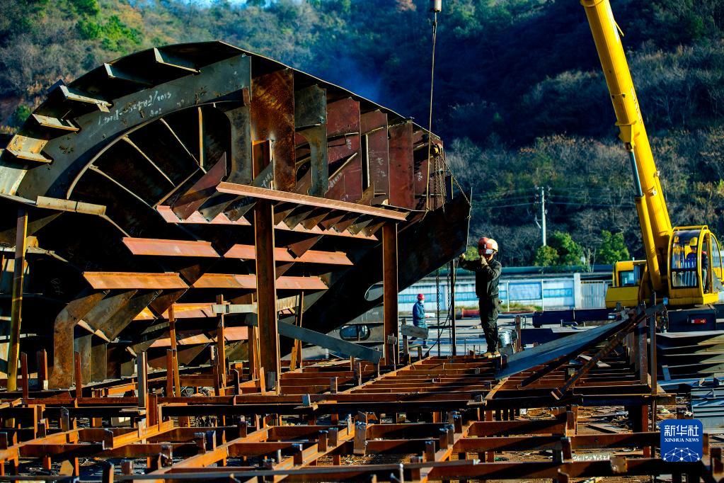 12月19日,在江西省九江市湖口縣高新技術(shù)產(chǎn)業(yè)園區華東船業(yè)廠(chǎng)區,工人在忙碌。