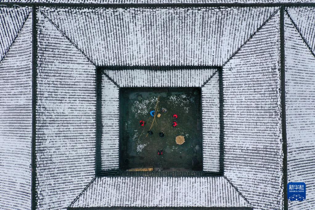 這是2月23日拍攝的浙江省寧波市海曙區李家坑村雪景(無(wú)人機照片)。