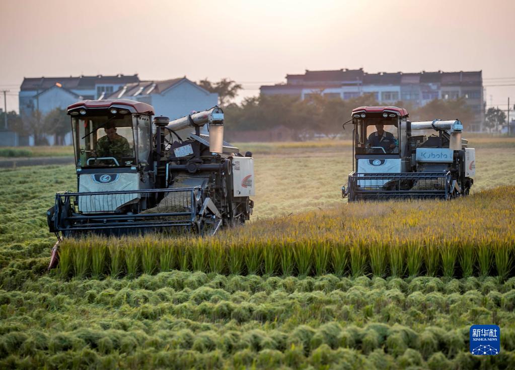 11月2日,江蘇省泰州市胡莊鎮丁莊村農民駕駛收割機收割水稻。