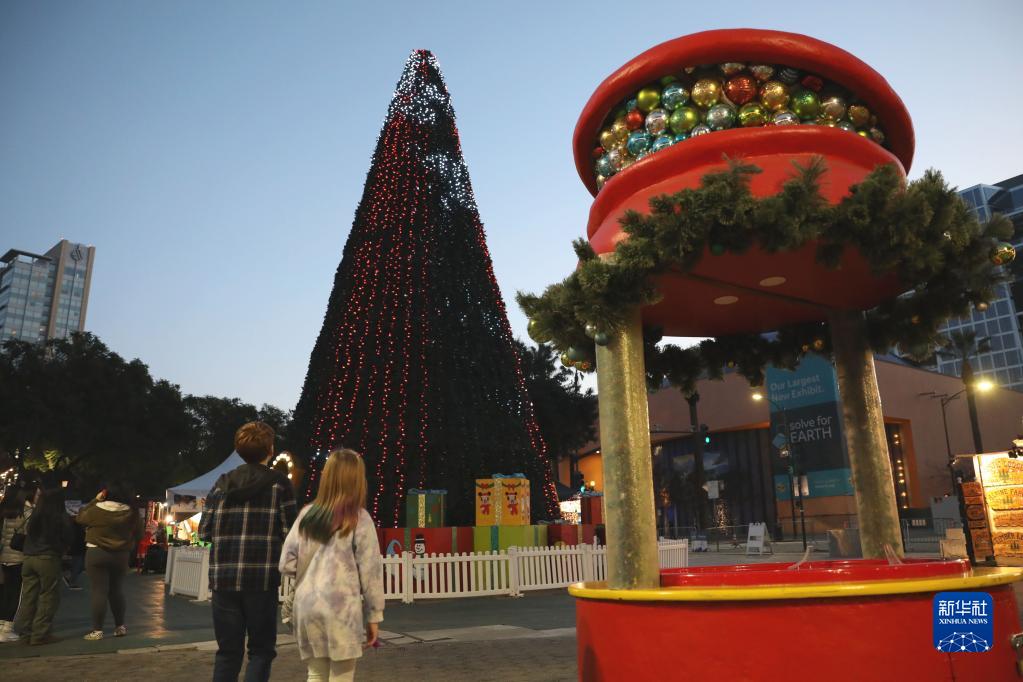 12月20日,在美國舊金山灣區圣何塞,人們觀(guān)賞圣誕主題裝飾。