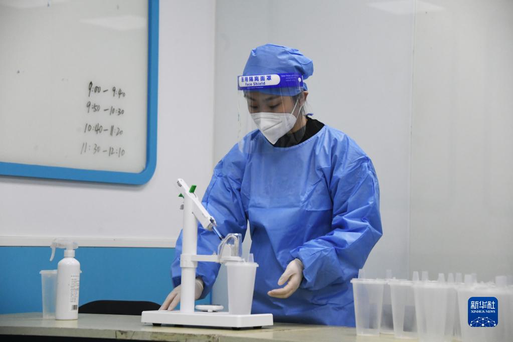 12月21日,在北京市海淀區海淀街道新冠疫苗接種點(diǎn),醫護人員進(jìn)行吸入式新冠疫苗接種前的準備工作。