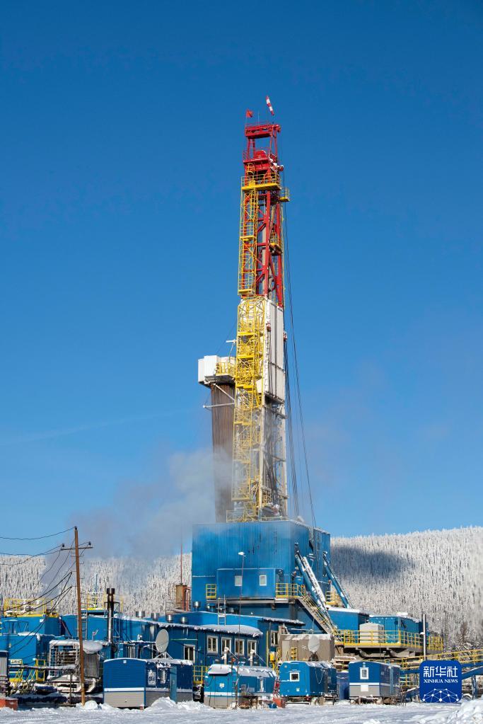 這是12月18日在俄羅斯伊爾庫茨克州拍攝的科維克塔天然氣氣田鉆井平臺。