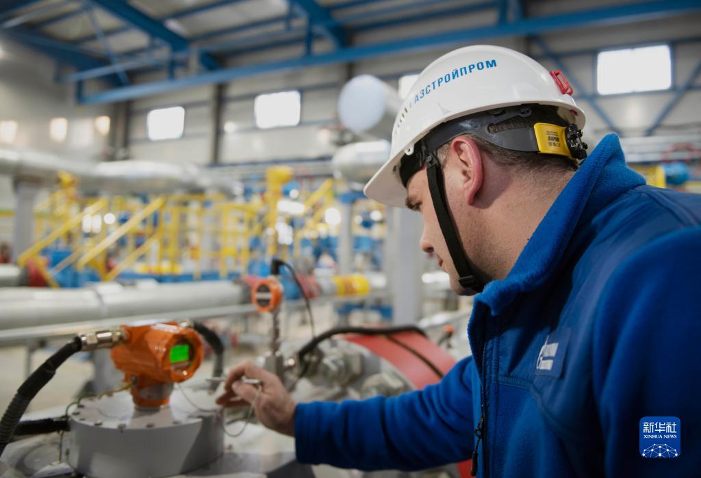 12月18日,在俄羅斯伊爾庫茨克州,工作人員在科維克塔天然氣氣田內巡視設備。