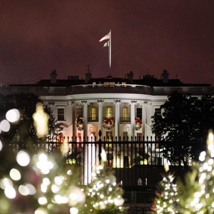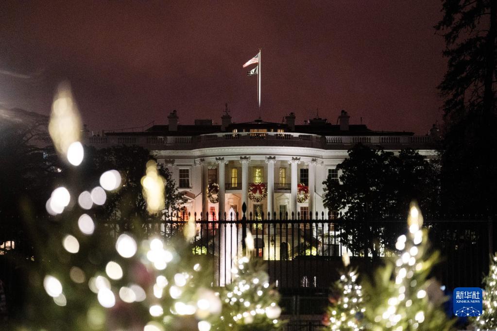 這是12月22日在美國華盛頓拍攝的圣誕樹(shù)裝飾掩映下的白宮。