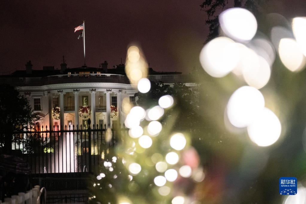 這是12月22日在美國華盛頓拍攝的圣誕樹(shù)裝飾掩映下的白宮。