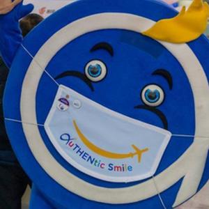 12月22日,在希臘雅典國際機場(chǎng),一名旅客與機場(chǎng)吉祥物合影。