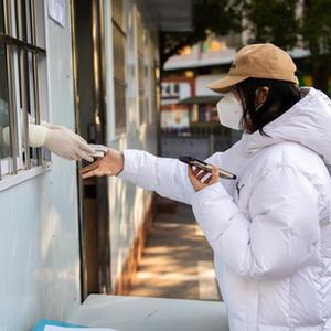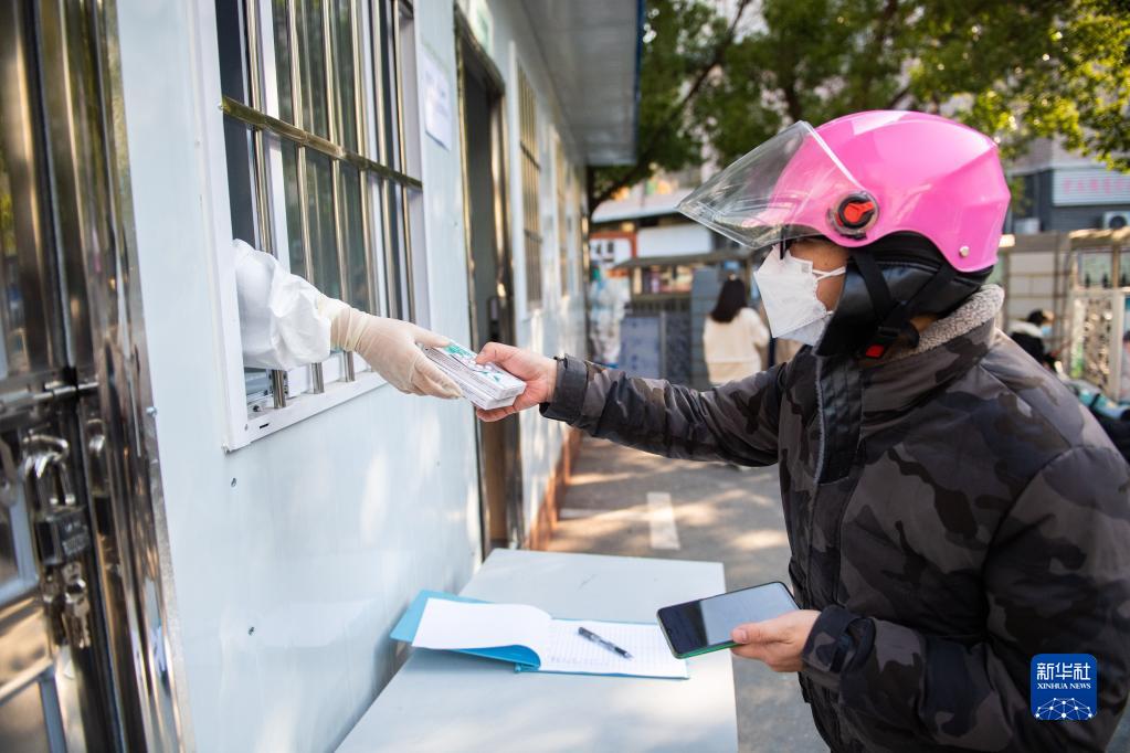 12月23日,在長(cháng)沙市湘江新區望岳街道社區衛生服務(wù)中心,市民在領(lǐng)取防疫健康包。