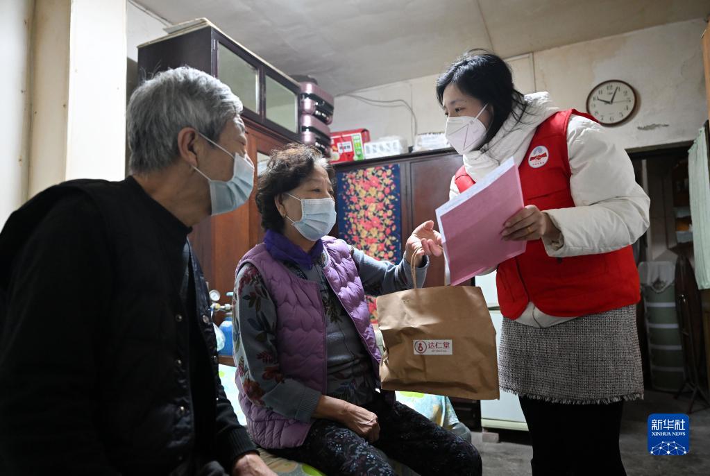 12月23日,在天津市和平區福明社區,社區工作者上門(mén)為困難人員發(fā)放“健康防疫包”。