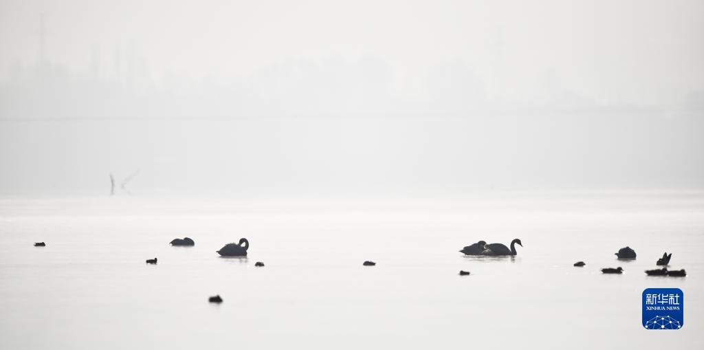 近日,青海省海東市化隆回族自治縣群科鎮的黃河上迎來(lái)近百只越冬的大天鵝,為冬日高原增添了一抹生機。