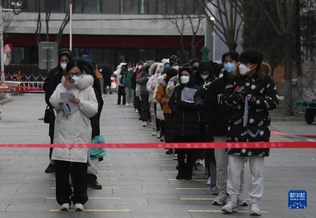 12月24日,在北京外國語(yǔ)大學(xué)考點(diǎn),考生排隊準備進(jìn)入考場(chǎng)。