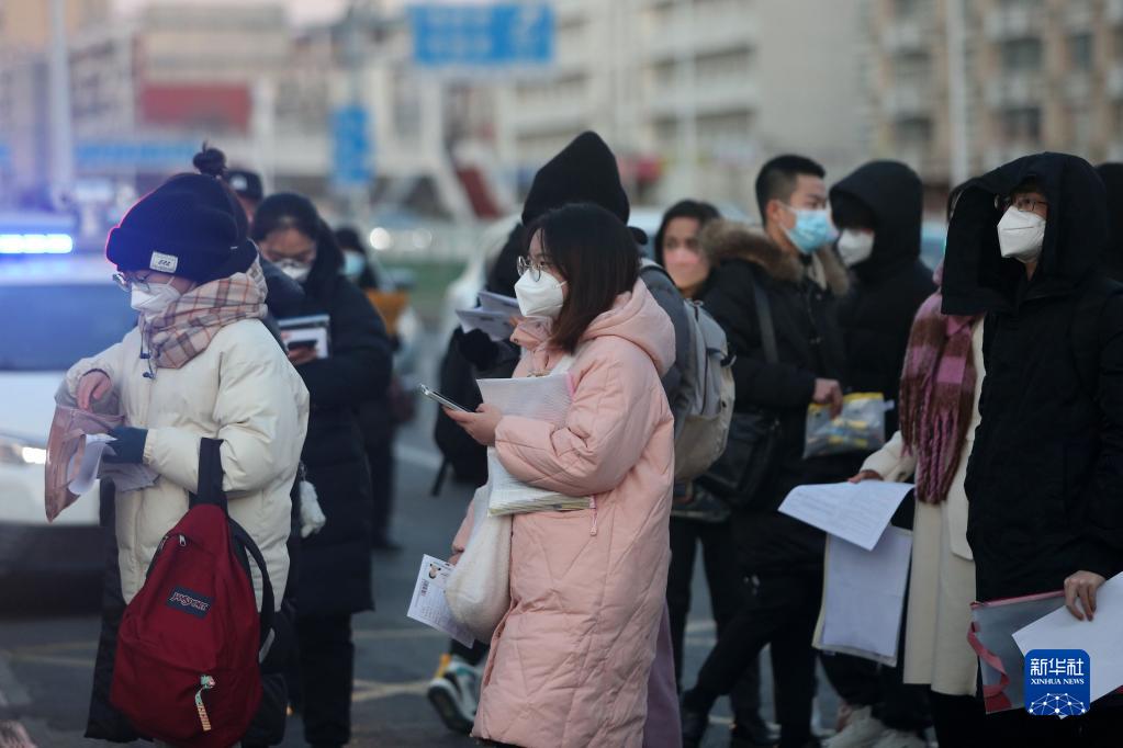 12月24日,在天津民族中學(xué)考點(diǎn),考生們準備進(jìn)入考場(chǎng)。