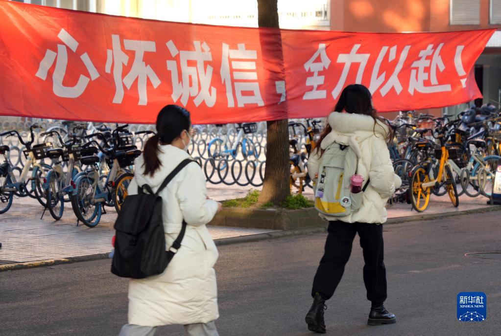 12月24日,在復旦大學(xué)考點(diǎn),考生前往考場(chǎng)。