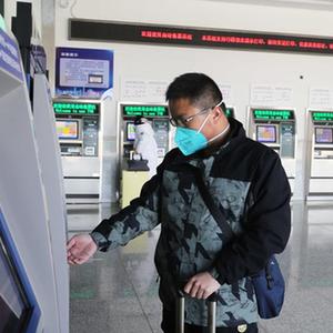 12月24日,旅客在寶蘭高鐵定西北站自助售票處辦理取票。