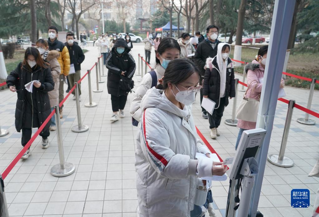 12月24日,在西北大學(xué)考點(diǎn),考生排隊刷身份證進(jìn)入考場(chǎng)。