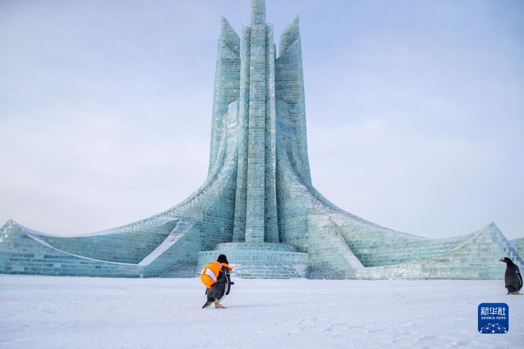 當日,哈爾濱極地公園的四只企鵝來(lái)到哈爾濱冰雪大世界園區“參觀(guān)”。