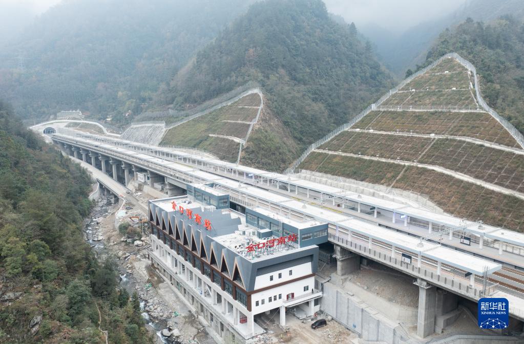 12月16日拍攝的新成昆鐵路金口河南站段(無(wú)人機照片)。