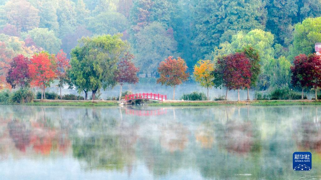 這是在江蘇省南京市中山植物園拍攝的秋日晨景(2022年11月2日攝,無(wú)人機照片)。