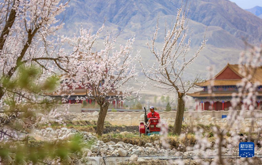 在甘肅省酒泉市肅州區金佛寺鎮,農民駕駛農機進(jìn)行春耕(2022年4月10日攝)。