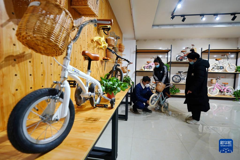 12月27日,客商在河北省平鄉縣一家自行車(chē)、童車(chē)生產(chǎn)企業(yè)的展廳內挑選產(chǎn)品。