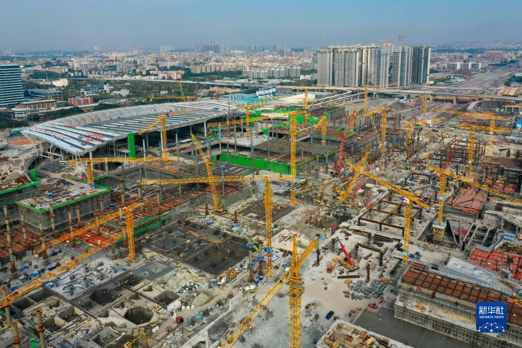 廣州白云火車(chē)站項目二期主體結構建設現場(chǎng)(無(wú)人機照片,12月27日攝)。