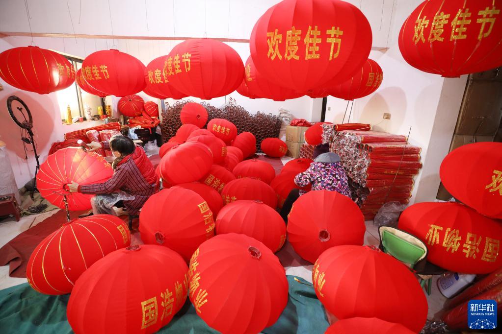 新年臨近,河南省焦作市溫縣北冷鄉許北張村燈籠作坊內一派忙碌景象,村民們加緊趕制大紅燈籠,供應節日市場(chǎng)。