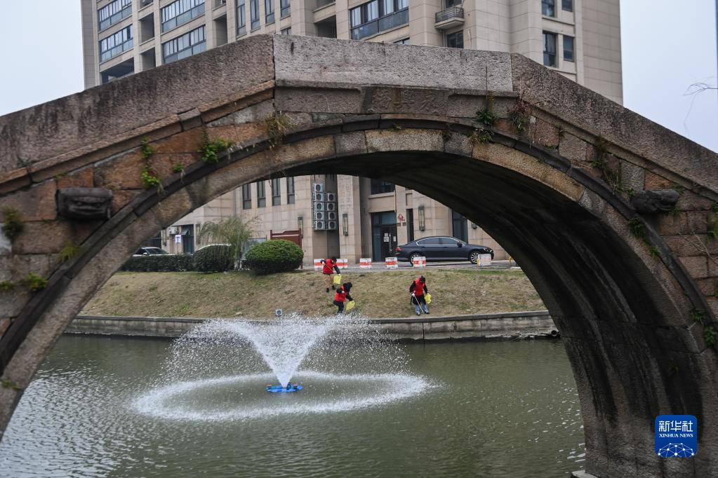 12月28日,龍泉街道的黨員志愿者在永興橋畔的河道邊巡查、清理垃圾。