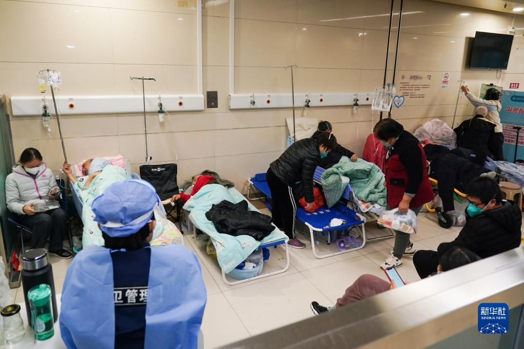 在朝陽(yáng)醫院急診醫學(xué)科,家屬等候區改成臨時(shí)病房,以救治更多病人(12月27日攝)。