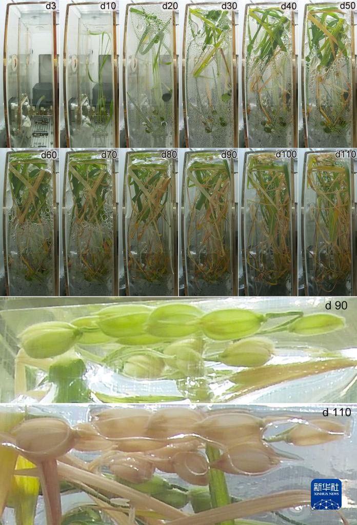 這是水稻在問(wèn)天艙生命生態(tài)實(shí)驗柜通用生物培養模塊中完成“從種子到種子”全生命周期不同發(fā)育階段的代表性圖片,圖像上的數字表示注入營(yíng)養液?jiǎn)?dòng)實(shí)驗后的天數。隨著(zhù)圓滿(mǎn)完成神舟十四號載人飛行任務(wù)的3位航天員平安歸來(lái),經(jīng)歷了120天全生命周期的水稻和擬南芥種子,也一起搭乘飛船返回艙從太空歸來(lái)。我國在國際上首次完成水稻“從種子到種子”全生命周期空間培養實(shí)驗?!⌒氯A社發(fā)