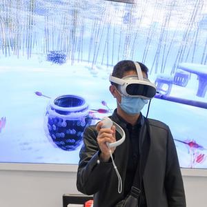 12月29日,參觀(guān)者在第十八屆文博會(huì )浙江展臺體驗新華智云自主研發(fā)的數字文化互動(dòng)長(cháng)卷。