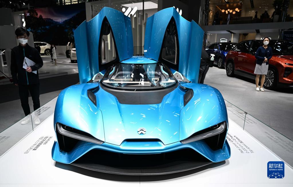 12月30日在車(chē)展蔚來(lái)汽車(chē)展臺拍攝的蔚來(lái)ep9電動(dòng)超跑。