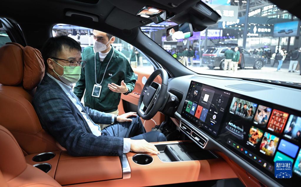 12月30日,在車(chē)展的理想汽車(chē)展臺,參觀(guān)者體驗理想L9。
