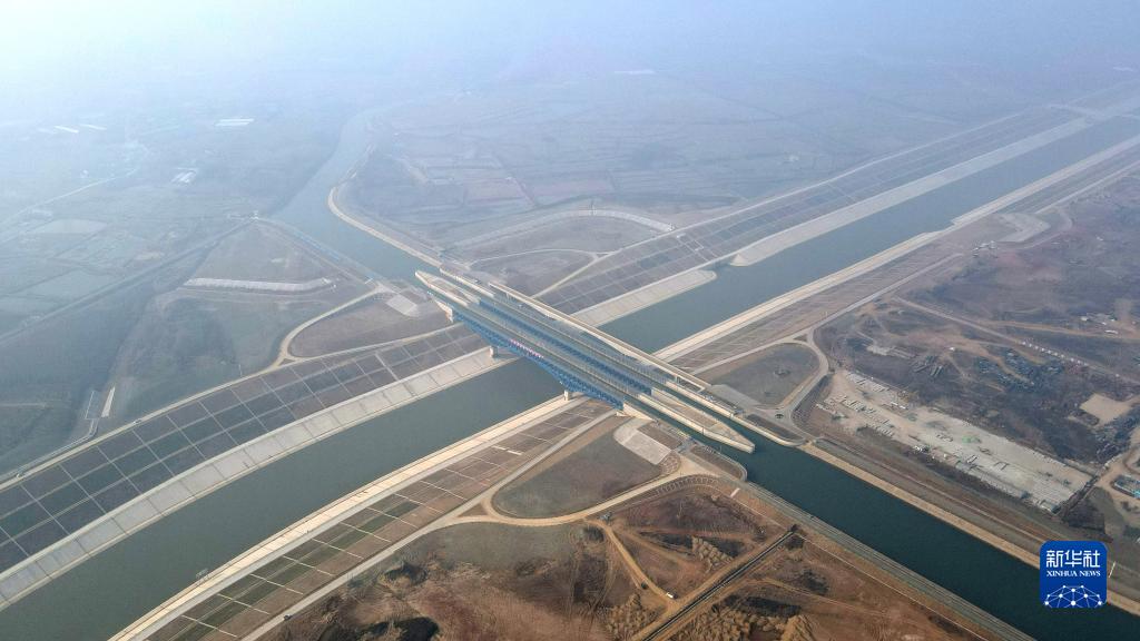 12月30日,中鐵四局參建的引江濟淮淠河總干渠渡槽通航(無(wú)人機照片)。淠河總干渠從引江濟淮運河上凌空而過(guò),呈現出河上有河的“水上立交”景象。