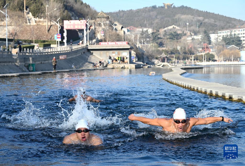12月31日,邯鄲市峰峰礦區的冬泳愛(ài)好者在水中暢游。