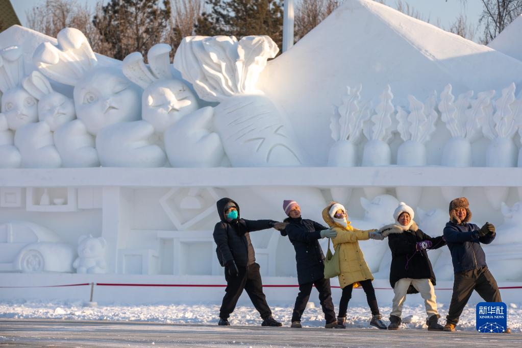 當日,許多市民和游客來(lái)到第35屆哈爾濱太陽(yáng)島國際雪雕藝術(shù)博覽會(huì )園區游玩,歡度元旦假期。
