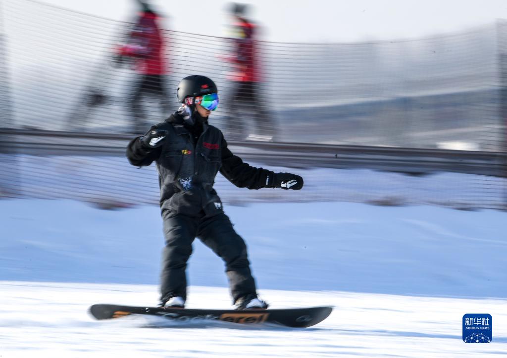 12月31日,市民在寧夏銀川市閱?;﹫?chǎng)練習滑雪。