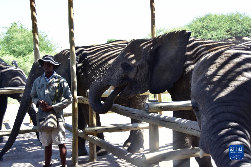 12月26日,在博茨瓦納東北部馬翁的大象孤兒院,飼養員照料幼象。