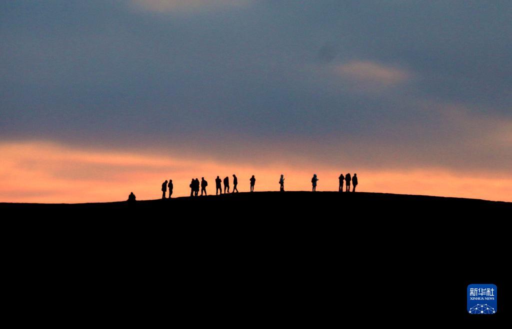 1月1日,游客在甘肅省敦煌市鳴沙山月牙泉景區觀(guān)賞大漠日出。